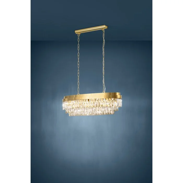 Show Stopper - The Valparaiso Range Features Stepped Rows Of Stunning Brilliant Glasses To Create A Sparkling Feature Within Your Home.Valparaiso H/L 10X40W E14 Gld