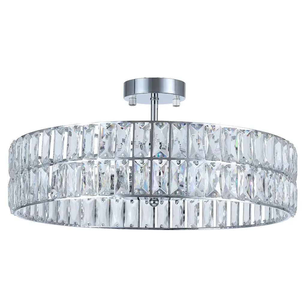 The RO 45 CTC (Close to Ceiling) light brings elegant sparkle and modern sophistication to any interior. Designed with a striking circular crystal surround, this fixture beautifully reflects and refracts light to create a bright, luxurious ambience while remaining compact and space-efficient. Perfect for rooms with lower ceilings, it sits close to the ceiling without compromising on impact. The fitting features six lampholders, delivering excellent illumination for living rooms, bedrooms, dining areas, or hallways. Available in gold, gun metal, and chrome finishes, the RO 45 CTC range offers versatile styling options to suit both contemporary and classic décor schemes.