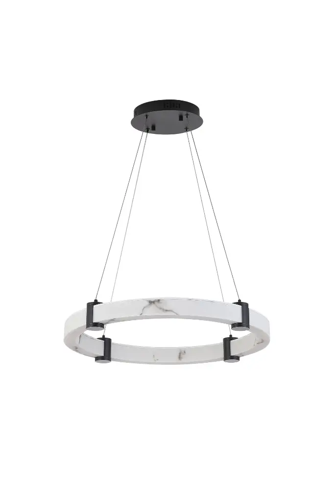 Command attention in your dining room, entry, or living space with the exquisite CARRARA 60 PENDANT. This captivating fixture elevates the classic ring chandelier design with a luxurious, integrated LED light source encased in a stunning, marble-look diffuser that casts a warm, inviting glow. Designed for contemporary living, it features a versatile 3CCT function, putting you in control to switch effortlessly between Warm White, Cool White, and Daylight colour temperatures to perfectly set the scene. Suspended by minimalist cables and anchored by sleek accents, this pendant is a true statement piece, available to perfectly match your decor in either a bold Black or a radiant Gold finish.