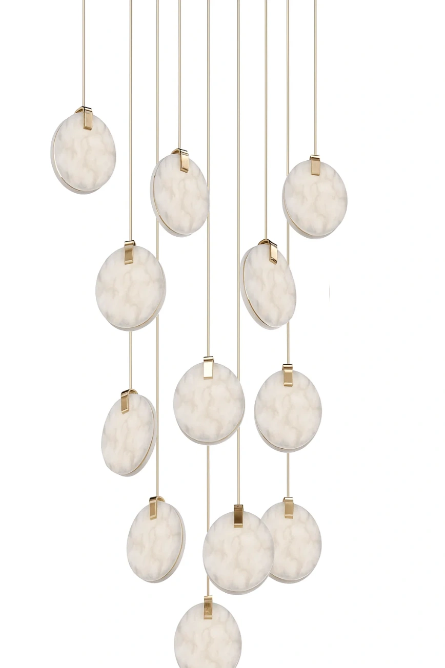 12 Alabaster discs, remote control, CCT, Dimmable |