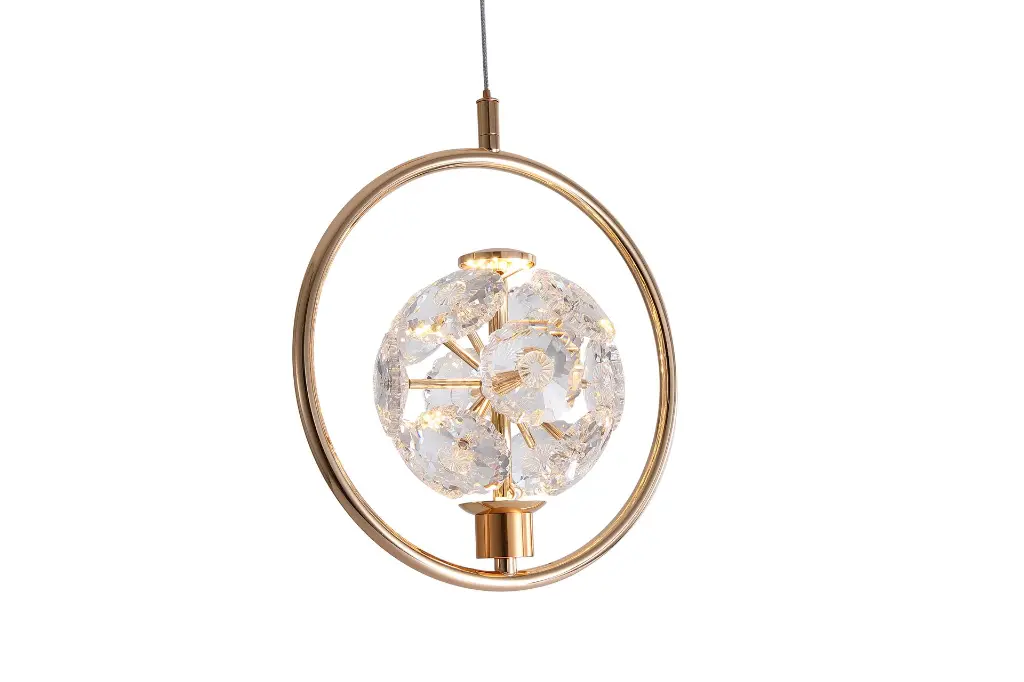 Elevate your interior design with the Jolie 1 Light Pendant, a stunning marriage of contemporary geometry and timeless brilliance. Featuring a delicate, suspended sphere of faceted crystals encased within a sleek, minimalist hoop, this pendant serves as a captivating focal point for any modern space. The crystal core beautifully refracts light, creating a shimmering dance of illumination that adds both texture and luxury to your room.