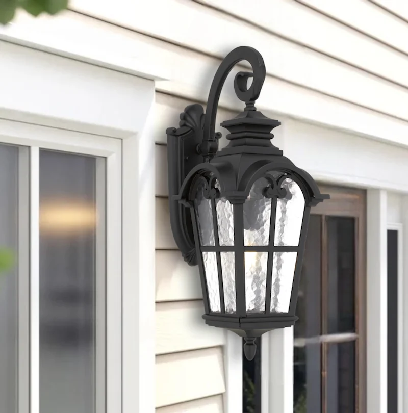 The Shelton Exterior Wall Light exudes stunning vintage and French Provincial style, crafted from durable aluminium and featuring a distinctive wave glass design. Ideal for outdoor spaces, it combines elegant aesthetics with practical functionality, adding charm and character to any exterior setting.