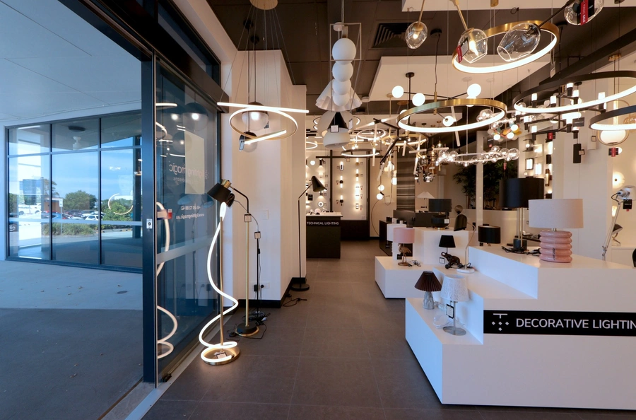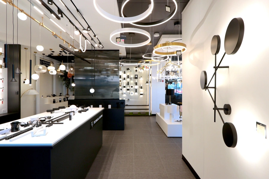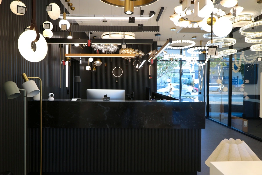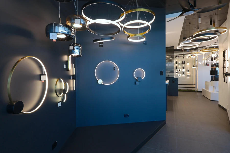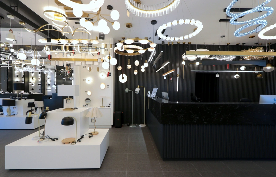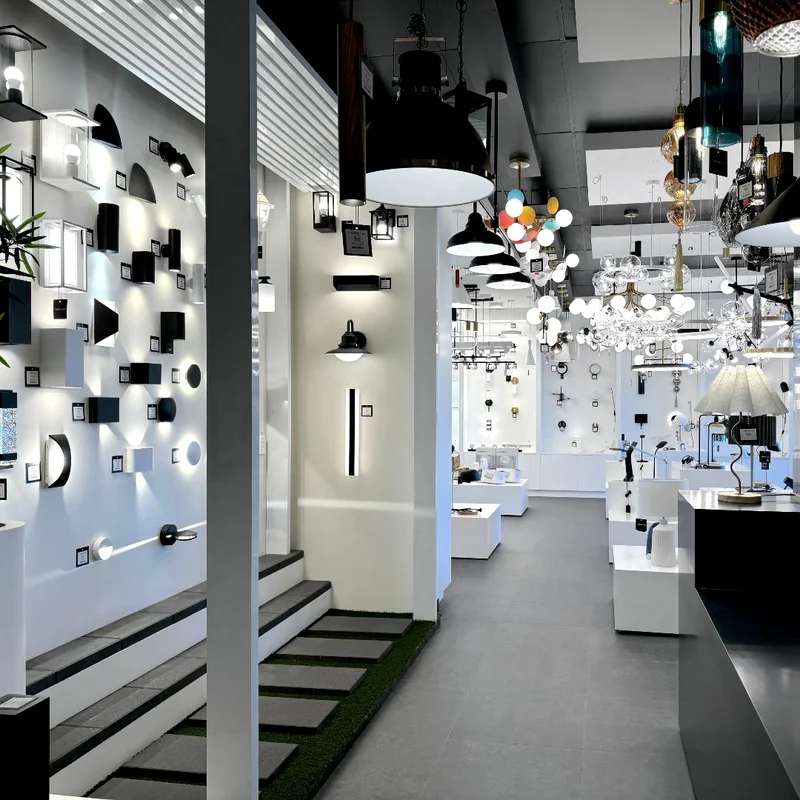 Our showroom boasts a distinctive design, blending ultramodern style, industrial loft vibes, soft classic touches, and an array of other captivating aesthetics, all under one roof. Immerse yourself in the world of lighting, where every direction of light finds its place.