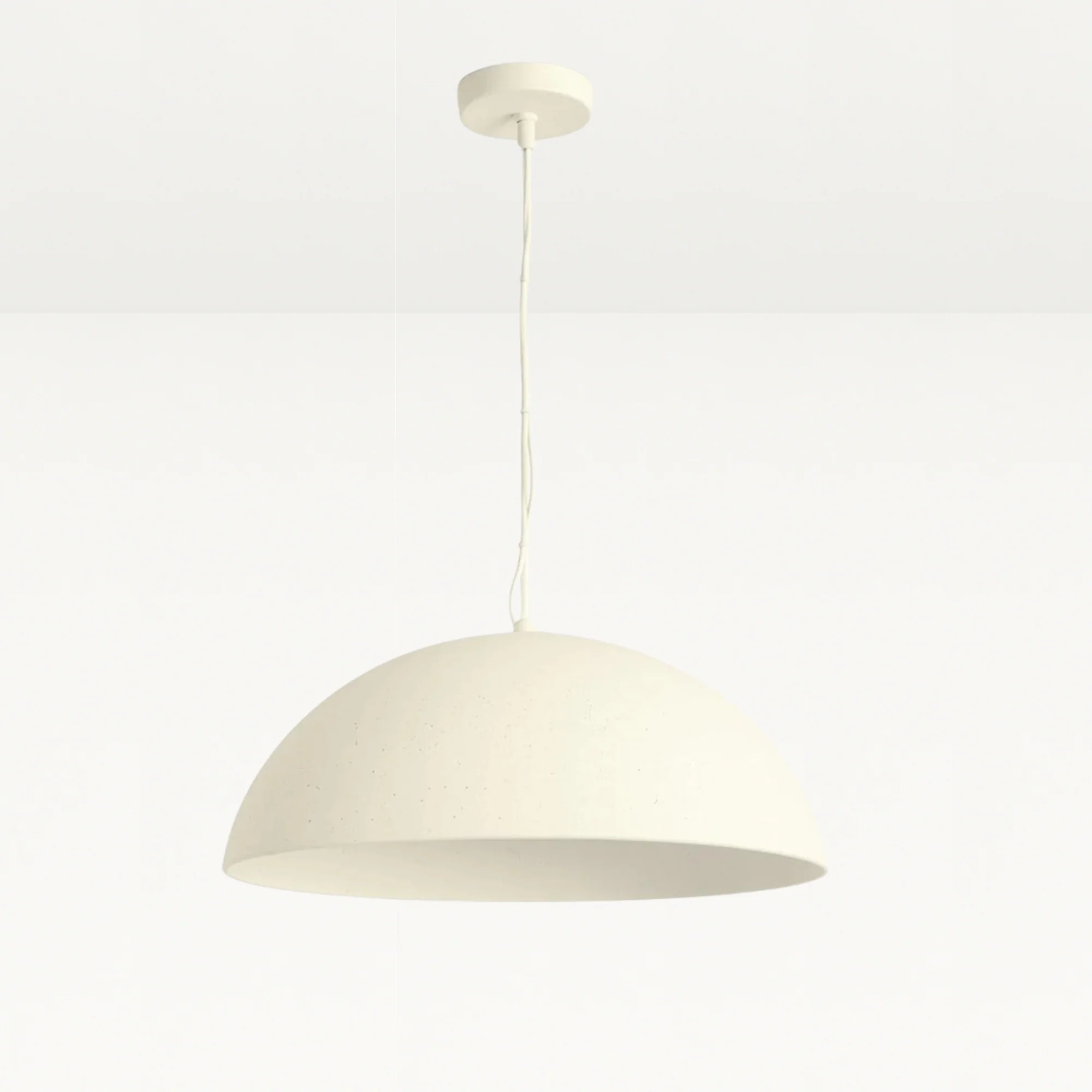 The Clay Dome in Natural Concrete combines sculptural presence with everyday function. Its generous Ø600 silhouette is crafted from solid stone concrete and suspended with a natural braided cable for a seamless look. Featuring an E27 globe base and dimmable capability, this pendant blends raw texture with modern performance, making it a versatile choice for both statement lighting and subtle ambiance.